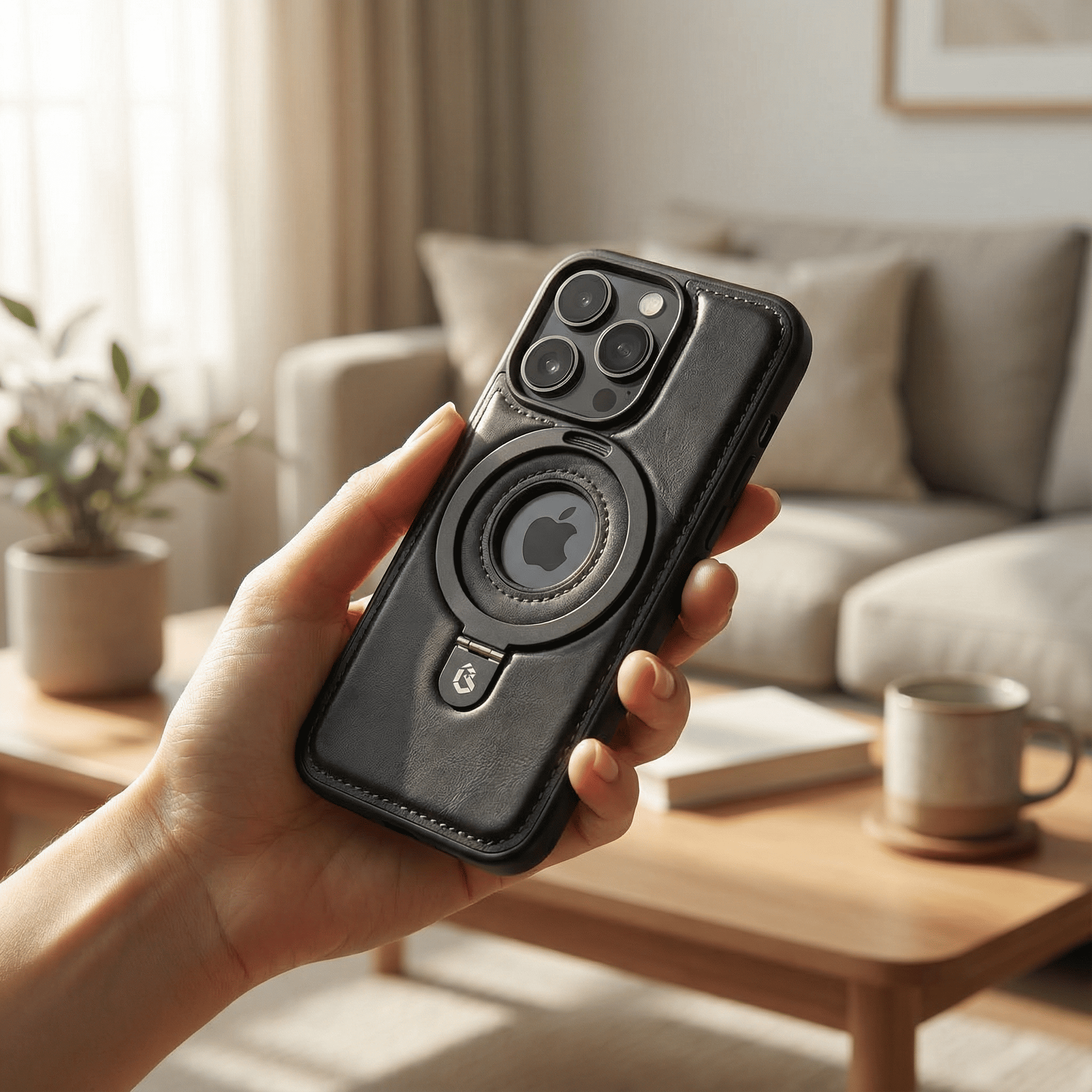 يستخدم هذا الغطاء مواد جلدية عالية. موفراً تجربة فريدة من نوعها عند الإمساك به. الجلد لا يزيد من الراحة فحسب،بل يضيف أيضاً لمسة طبيعية وأنيقة. كل لمسة تضهر نعومته و سلاسته، معبرة عن دوقك الرفيع
